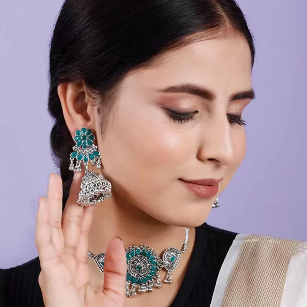 Rated 0 out of 5₹1,261.17Original price was: ₹1,261.17.₹630.10Current price is: ₹630.10.ClearGreen YellowYellowGreenLight PinkPink SkyblueSkyblue YellowGreen MaroonSelect options This product has multiple variants. The options may be chosen on the product pageA perfect blend of contemporary and traditional design, this elegant jewelry set is crafted for the modern woman. Made from high-quality, skin-friendly alloy, it offers lasting shine and durability while enhancing your unique style. Ideal for any occasion, with simple care, it stays as stunning as ever.”