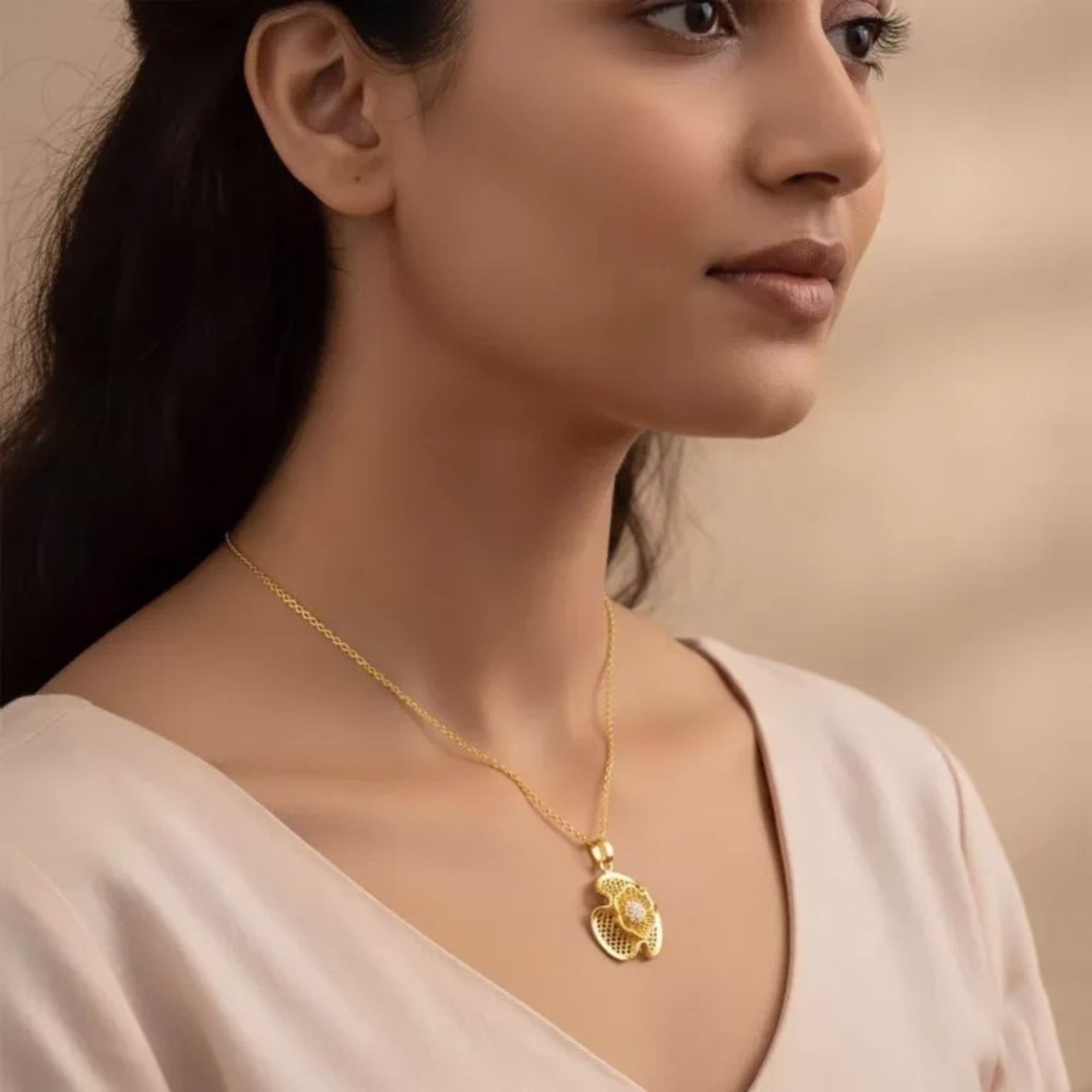 For a chic and elegant look, pair this pendant with a midi dress. Its delicate design will add the perfect touch of sophistication to your outfit, whether for a casual day out or a special occasion.