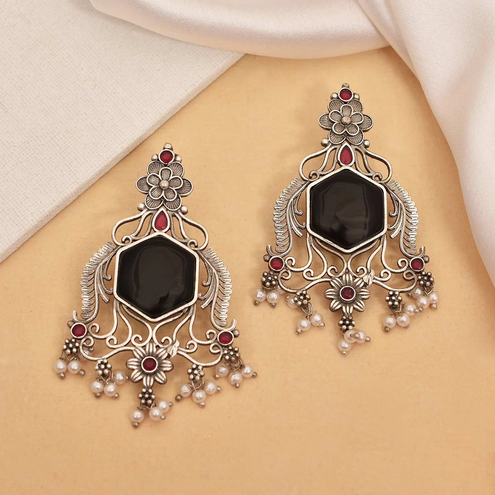 Elevate your style with the Shirley Silver Look Alike Dangler Earrings! These stunning earrings are the perfect accessory to make a statement. Designed to enhance any outfit, they’re crafted from brass and feature a chic silver look with artificial stones and elegant white pearls.
